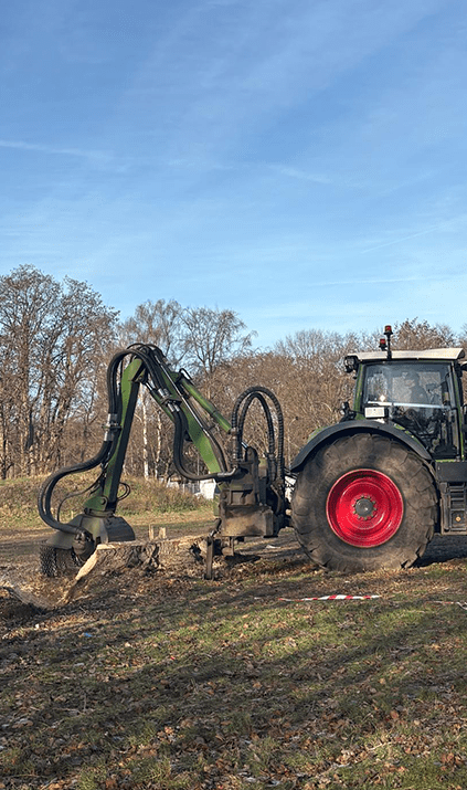 In accessible areas, stumps may instead be removed manually or with mechanical diggers. Although effective, this method is labour-intensive, can disturb surrounding soil, and is generally slower than stump grinding.